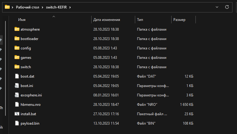 Папка с распакованной прошивкой должна содержать примерно такие же файлы и папки. Запуска приставки после прошивки нас интересует файл **payload.bin**.